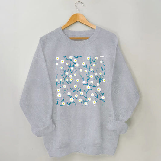 Weißes Sweatshirt mit Gänseblümchenmuster in Übergröße