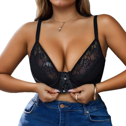 Sexy, dünner, bügelloser BH aus französischer Spitze mit Frontverschluss