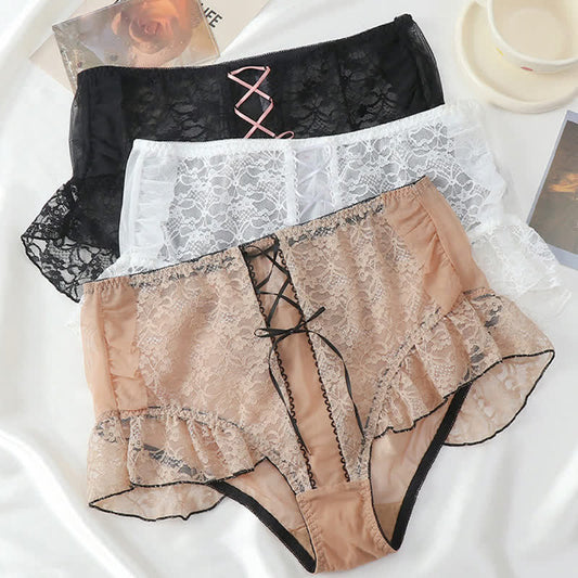 Atmungsaktive Slips zum Schnüren aus Jacquard-Spitze (3er-Pack)