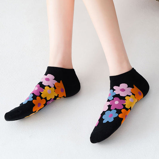 Füßlinge mit farbigen Blumen in Übergröße (5 Paar)