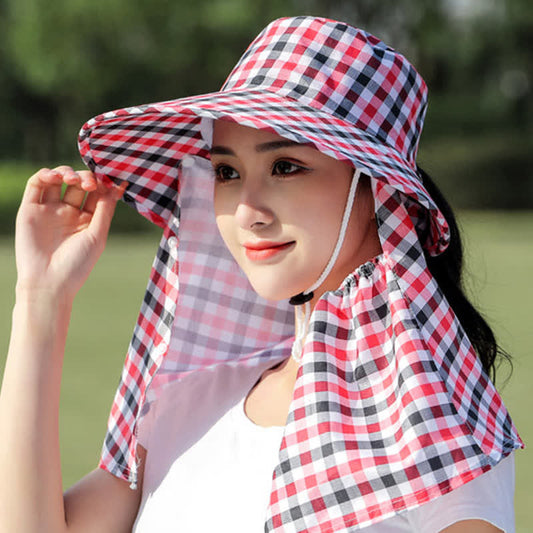 Sonnenhut mit abnehmbarer Maske und Karomuster
