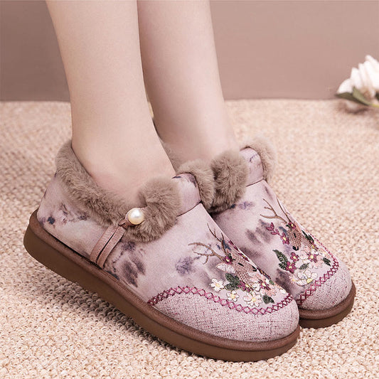 Hausschuhe in Übergröße mit Retro-Hirschstickerei