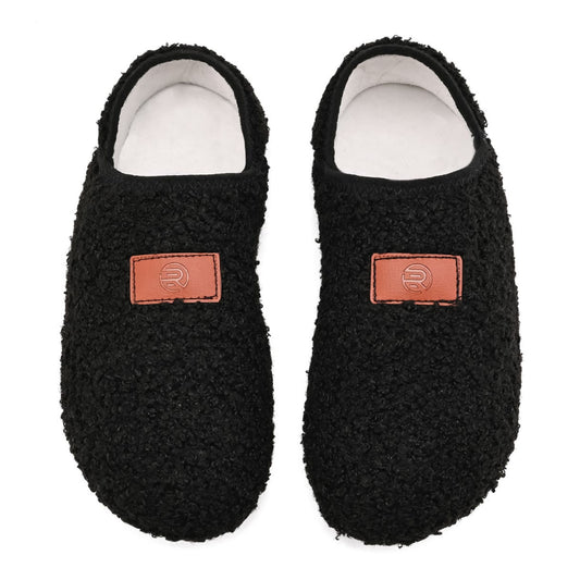 Flauschige Hausschuhe aus lockigem Fell in Übergröße