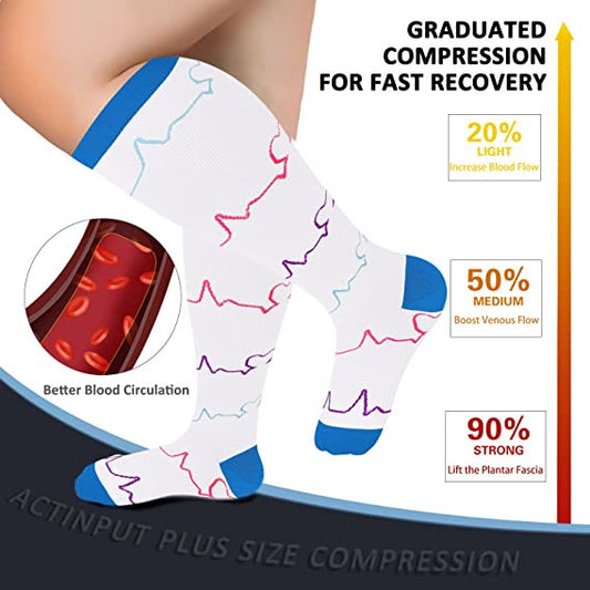 Elektrokardiogramm-Herz-Kompressionsstrümpfe in Übergröße (3 Paar)