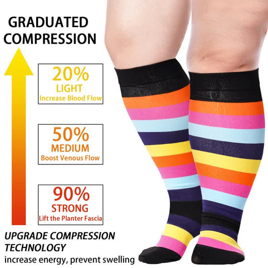 2XL-7XL Bunte Cool Lines Kompressionsstrümpfe in Übergröße