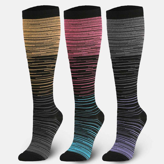 Kompressionsstrümpfe mit bunten Streifen (3 Paar)