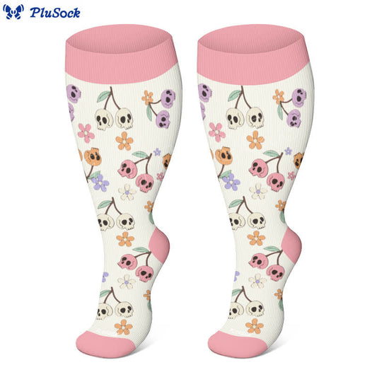Kompressionsstrümpfe der Halloween-Serie mit Blumen- und Totenkopfmotiv in Übergröße