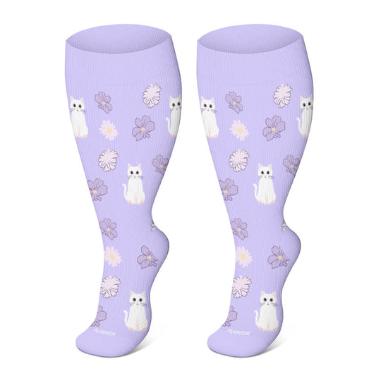 Kompressionsstrümpfe mit Katzenblumenmuster in Übergröße (3 Paar)