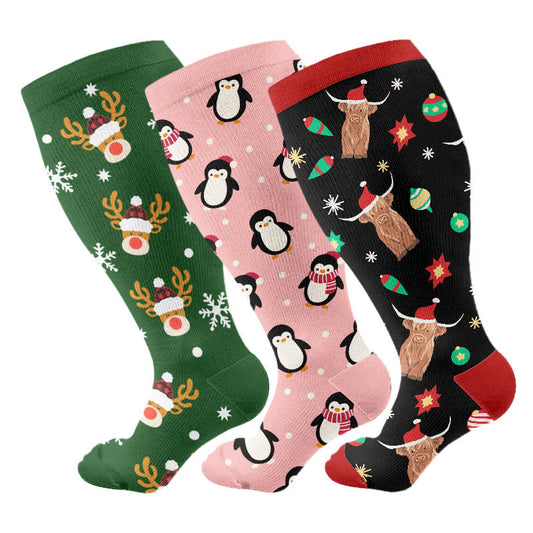Kompressionsstrümpfe mit Pinguin-, Hirsch- und Kuhmotiven in Übergröße