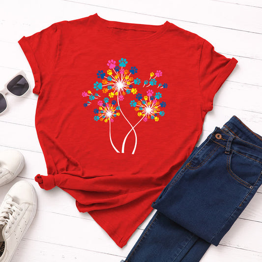 Kreatives Löwenzahn-Kurzarm-T-Shirt in Übergröße