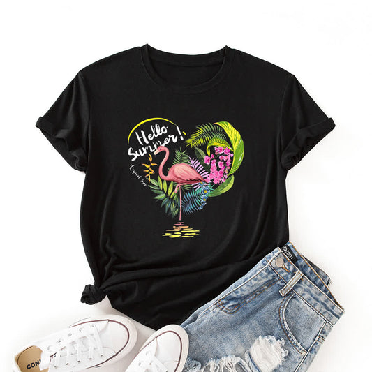 Kurzärmliges T-Shirt mit Herz-Flamingo-Print in Übergröße