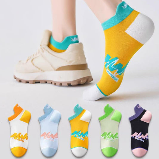 Knöchel-Kompressionssocken mit Farbblock-Buchstabendruck (5 Paar)