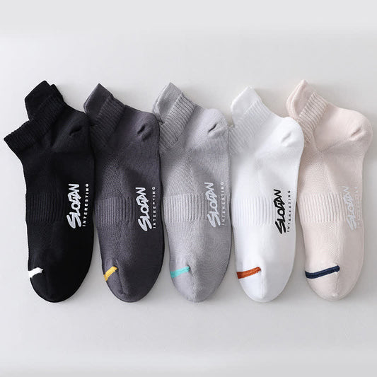 Dünne Sport-Söckchen aus Netzstoff mit Buchstabendruck (5 Paar)
