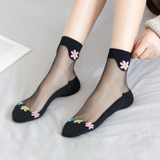Viertelsocken aus Eisseide mit Blumenmuster (9 Paar)