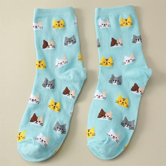 Socken mit Cartoon-Katzenkopf (5 Paar)