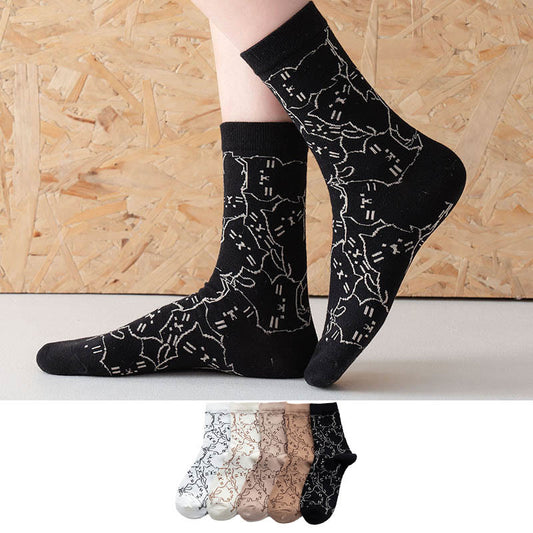 Viertelsocken mit Retro-Blumenmuster (5 Paar)