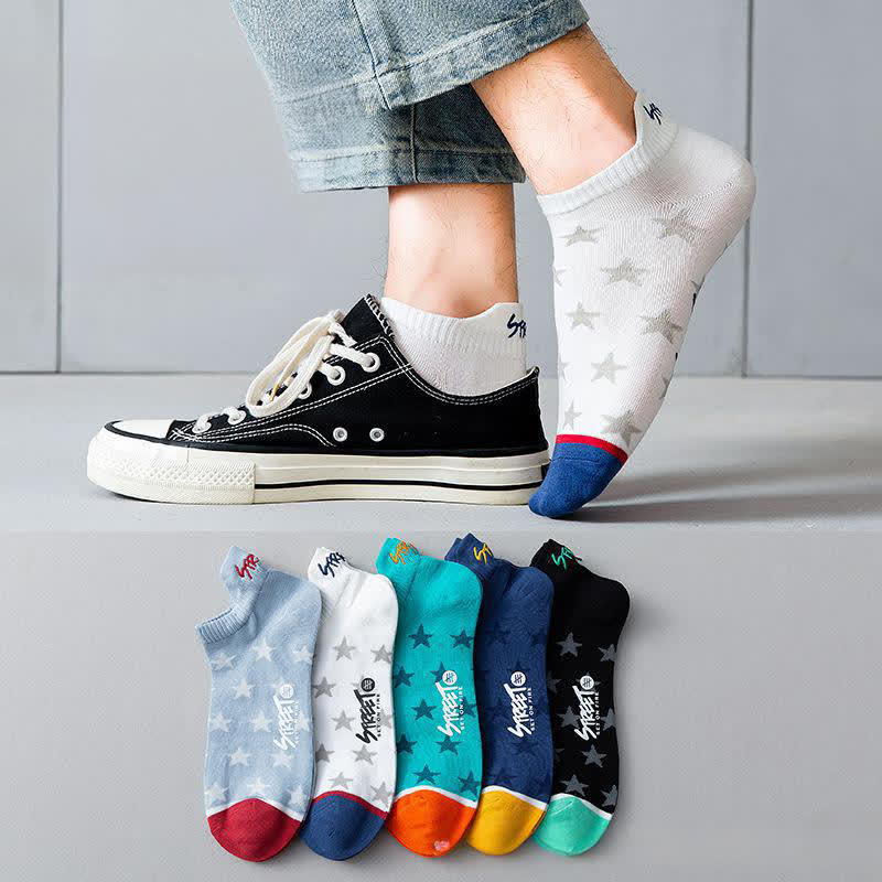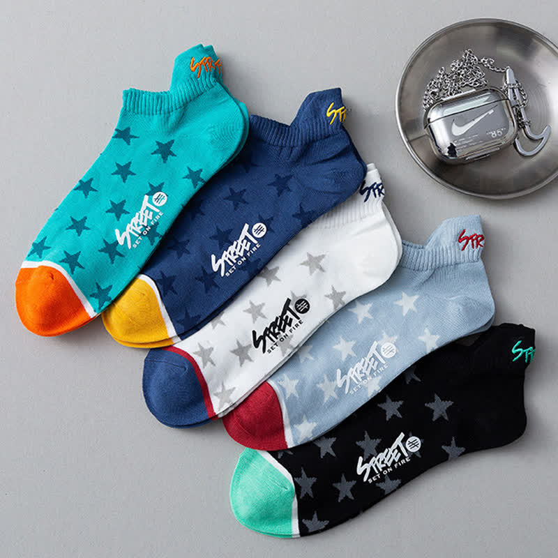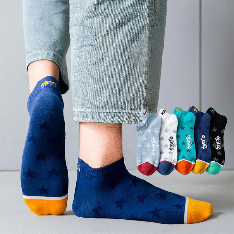 Diese atmungsaktiven Baumwoll-Söckchen mit Sternenmuster bestehen aus weicher, atmungsaktiver Baumwolle und bestechen durch ihr stilvolles Sternenmuster. Sie bieten einen bequemen Sitz und halten Ihre Füße den ganzen Tag über kühl, frisch und gut gestützt.