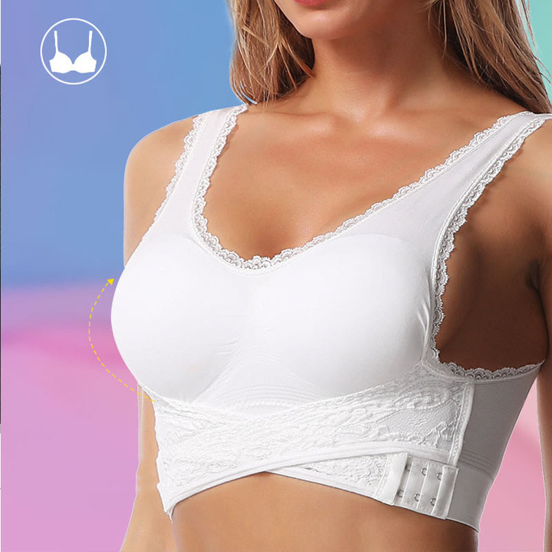 Der bügellose Plus Size Spitzen-BH mit Front-Cross-Side-Buckle vereint Komfort und Halt mit einem Hauch von Eleganz. Er ist für fülligere Figuren konzipiert und verfügt über ein Front-Cross-Design mit verstellbaren seitlichen Schnallen für eine individuelle Passform. Die bügellose Konstruktion sorgt für ganztägigen Tragekomfort, während zarte Spitzendetails für ein feminines und stilvolles Flair sorgen. Perfekt für den Alltag, bietet er Funktionalität und Eleganz zugleich.