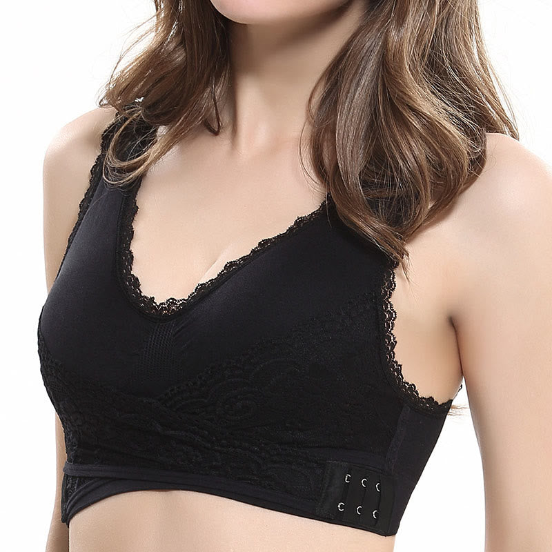 Bügelloser Spitzen-BH in Übergröße mit gekreuzter Schnalle vorne und seitlich