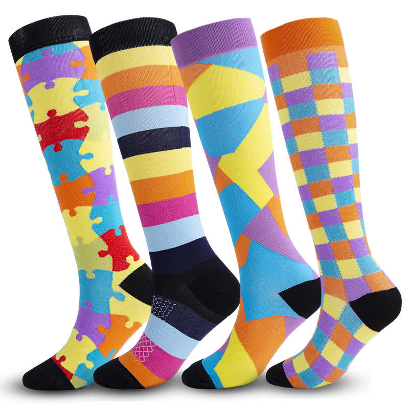 Bunte Puzzle-Kompressionsstrümpfe (4 Paar)