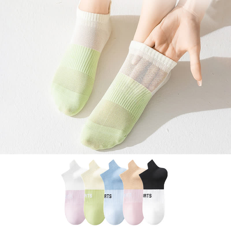 Dünne, atmungsaktive Sport-Kompressionssocken mit Buchstaben-Motiv (5 Paar)