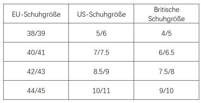 Hinweis: Diese Größentabelle dient nur als Beispiel. Bitte wählen Sie die richtige Größe anhand der Größentabelle auf der Produktseite.
