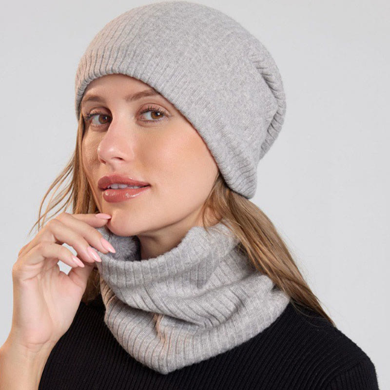 Einfarbiges, schlichtes 2-in-1-Set mit Beanie-Schal und Strick
