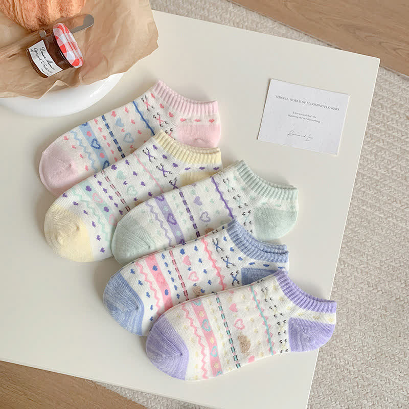 Füßlinge mit Herz-Bär-Streifen (5 Paar)