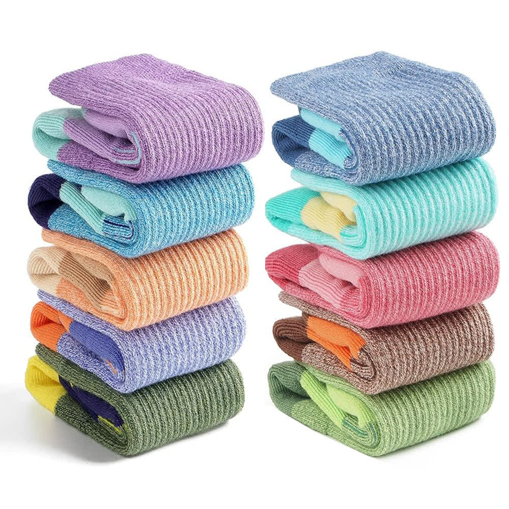 Gestreifte, feuchtigkeitsableitende Kompressionsstrümpfe mit Farbblockdesign (5 Paar)