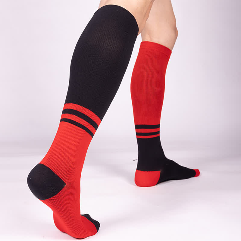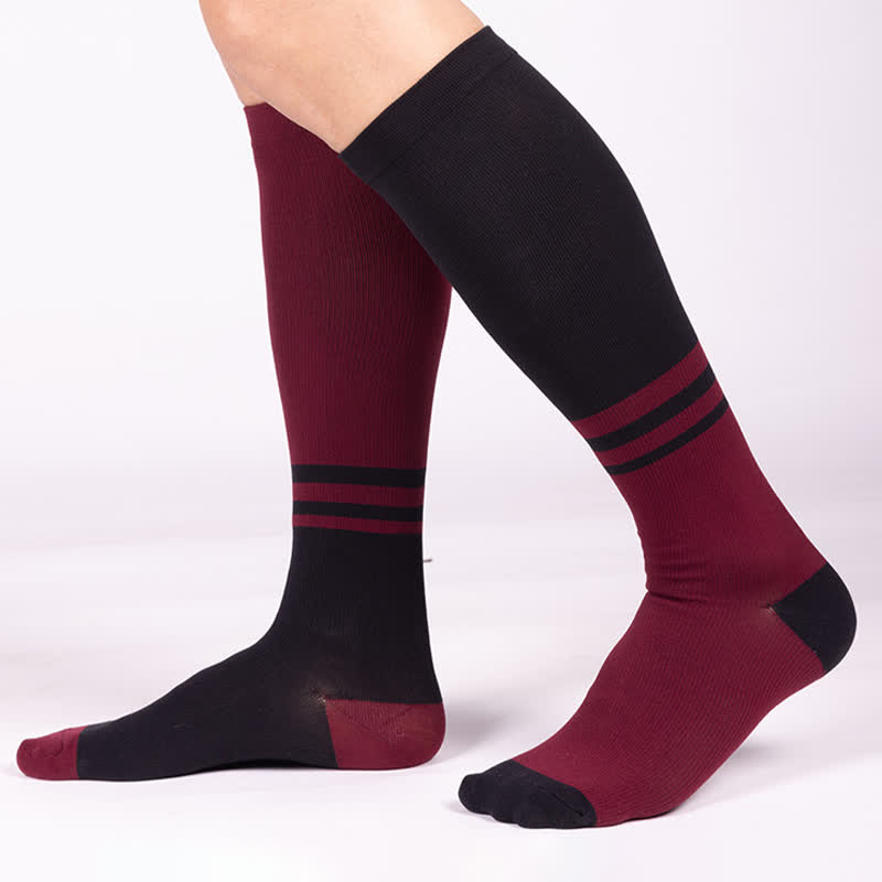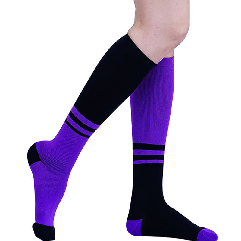 Die gestreiften Color Block Kompressionsstrümpfe bestechen durch ihr auffälliges, modernes Design mit stützender Kompression. Aus atmungsaktivem, dehnbarem Material gefertigt, fördern sie die Durchblutung, reduzieren Müdigkeit und bieten ganztägigen Tragekomfort. Perfekt für Training, Reisen oder den Alltag mit einem stilvollen Touch.