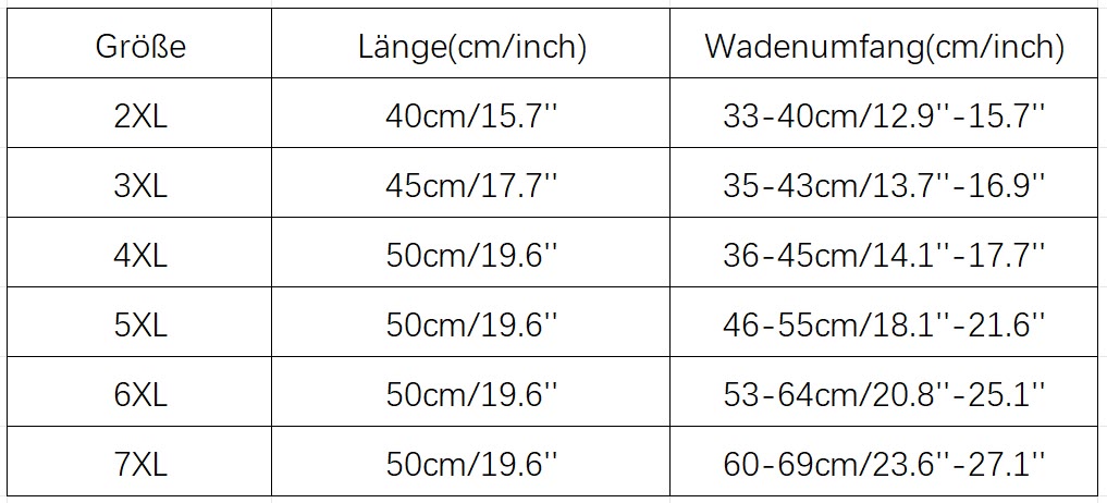 Hinweis: Diese Größentabelle dient nur als Beispiel. Bitte wählen Sie die richtige Größe anhand der Größentabelle auf der Produktseite.