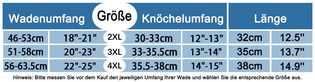 Durch genaues Messen Ihres Knöchelumfangs, Wadenumfangs und Ihrer Beinlänge können Sie Kompressionsstrümpfe auswählen, die bequem sitzen.