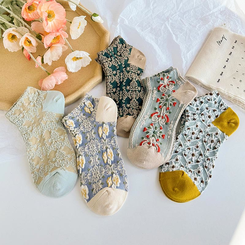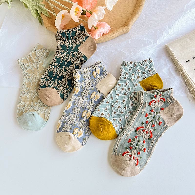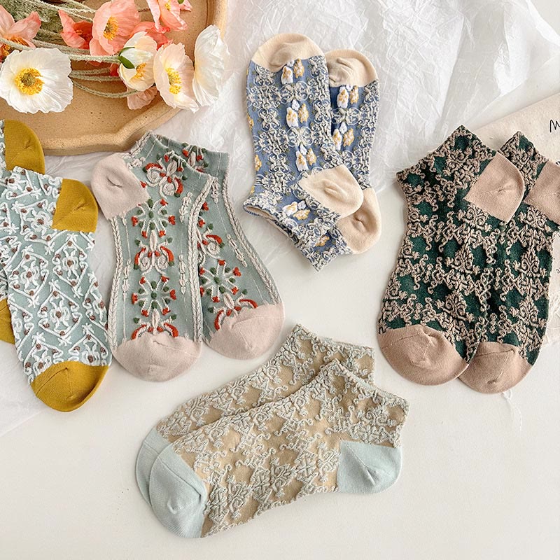 Retro-Söckchen mit 3D-Relief (5 Paar)