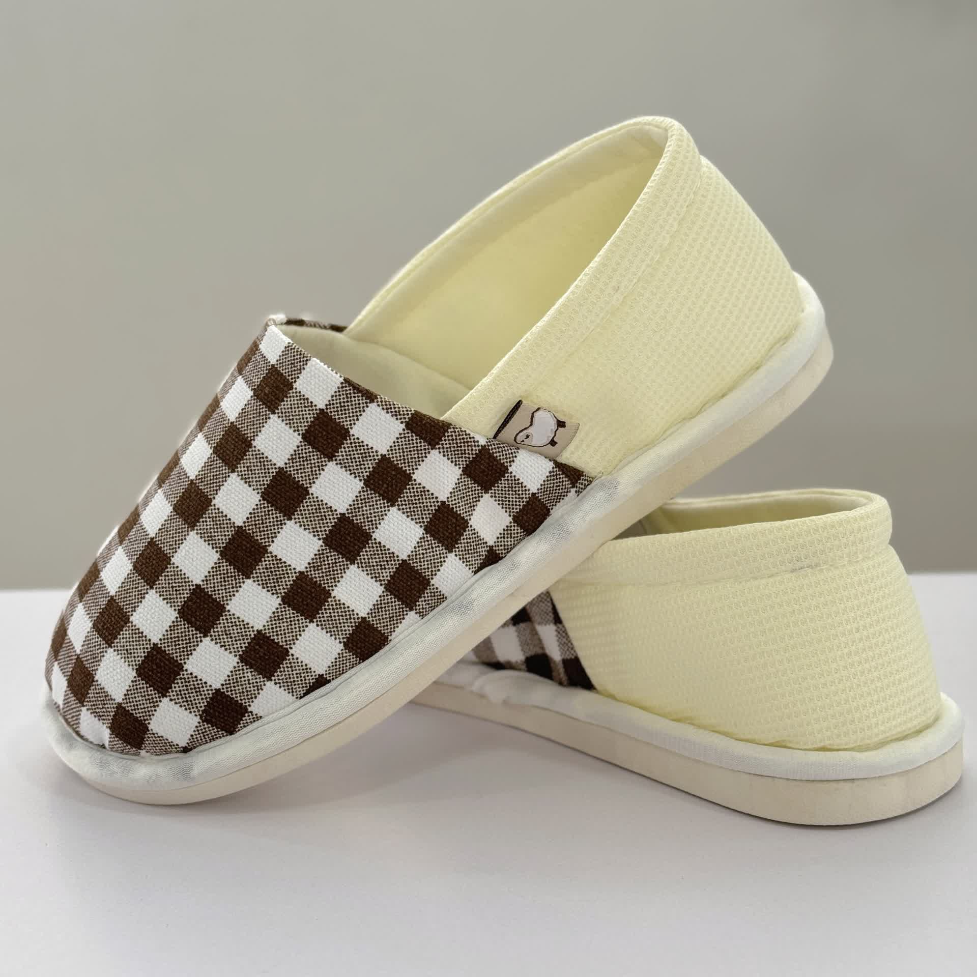 Rutschfeste Hausschuhe aus Canvas mit Karomuster