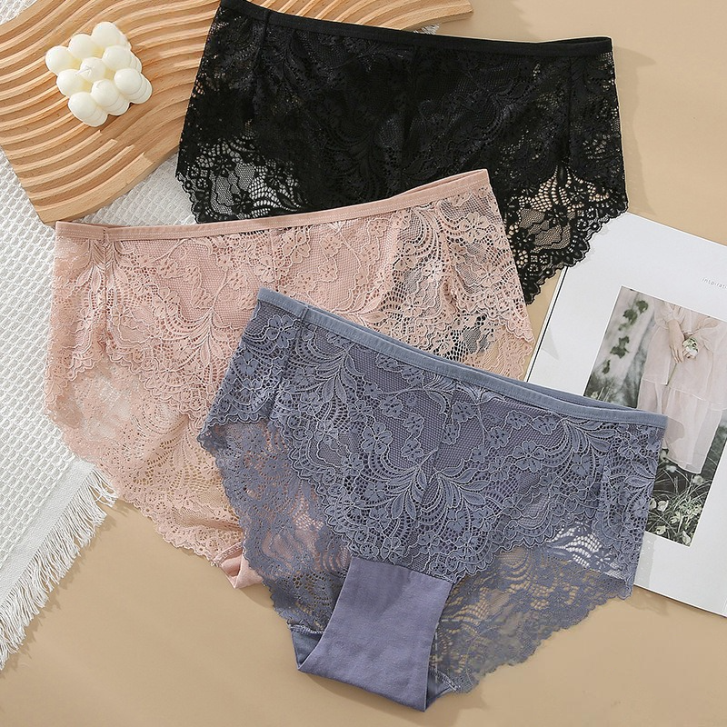 Sexy, halbtransparente Spitzenhöschen mit hoher Taille in Übergröße (3er-Pack)