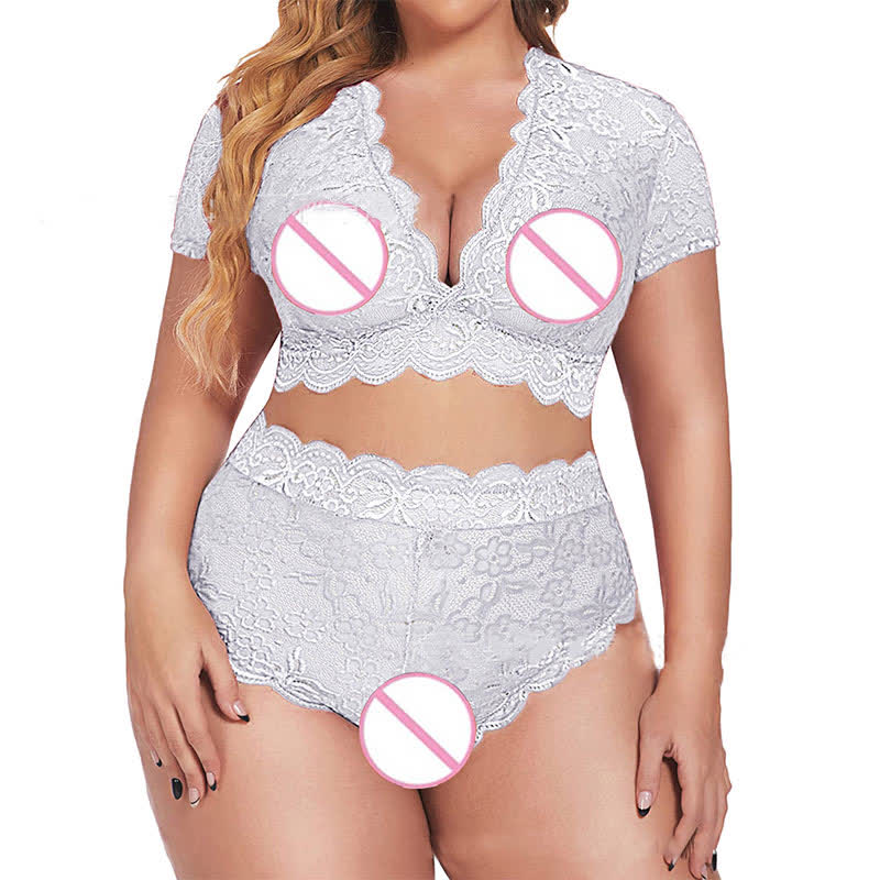 Sexy Spitzen-BH-Set in Übergröße, transparent, bügellos