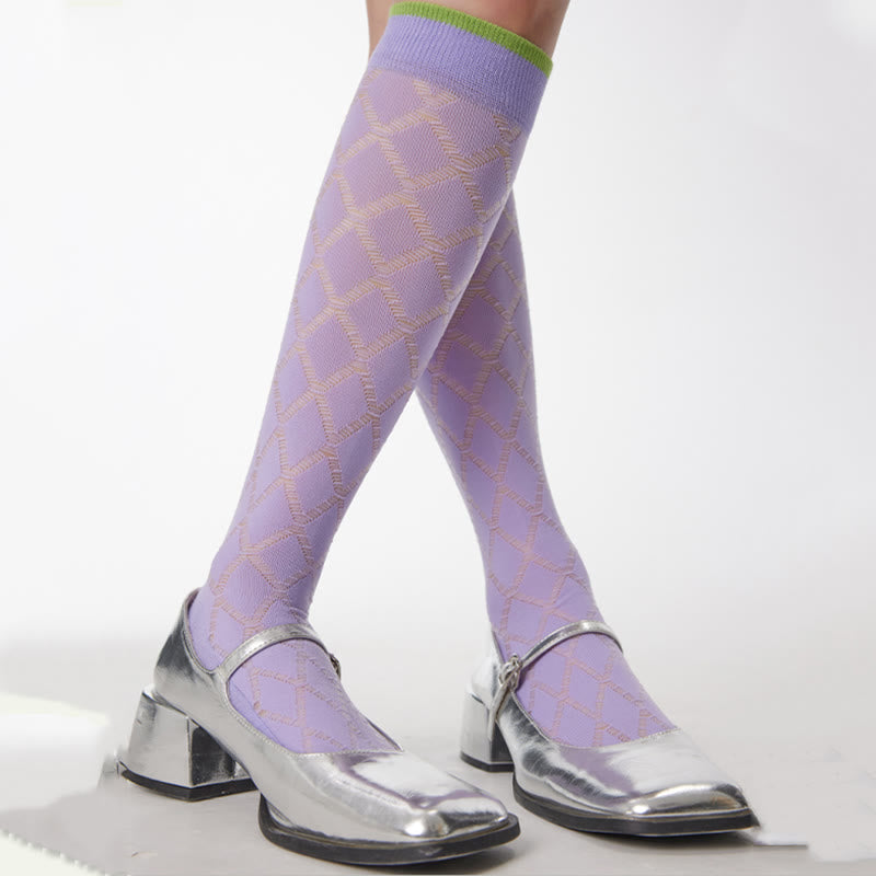 Transparente Kompressionsstrümpfe aus Glas mit Rautenmuster in Lila