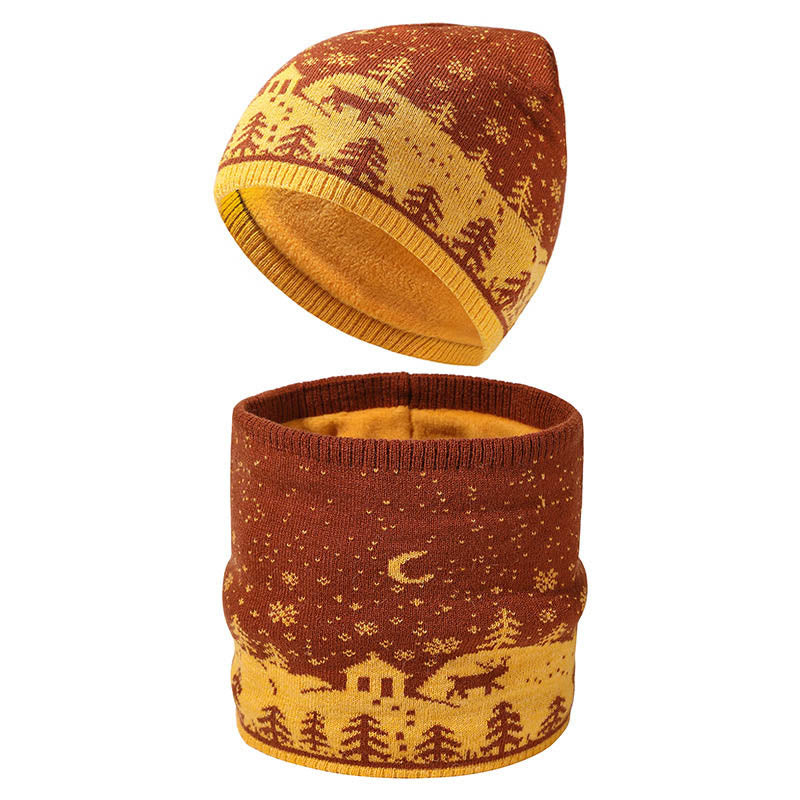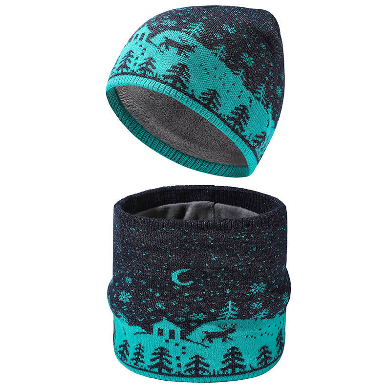 Warmes 2-in-1-Set mit Weihnachts-Element-Mütze und Schal